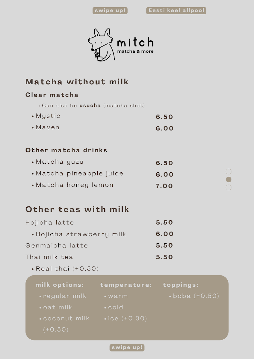 Welcome to mitch matcha & more, a cozy café nestled in the heart of Tallinn at Müürivahe 15. This delightful spot offers an exquisite selection of matcha-based beverages and intriguing desserts, perfect for both matcha enthusiasts and casual drinkers alike.